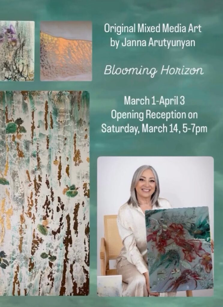 You’re warmly invited to Janna Arutyunyan’s Solo Exhibition at the Geo Gallery through the Burbank Art Association. Opening Reception: Saturday, March 14, 2026 5:00 – 6:00 PM at 1545 Victory…