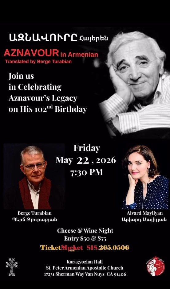 Join us in celebrating Aznavour’s Legacy on His 102nd Birthday. Berge Turabian and Alvard Mayilyan duet performing Aznavour in Armenian is a breath of a fresh air for Armenian speaking…