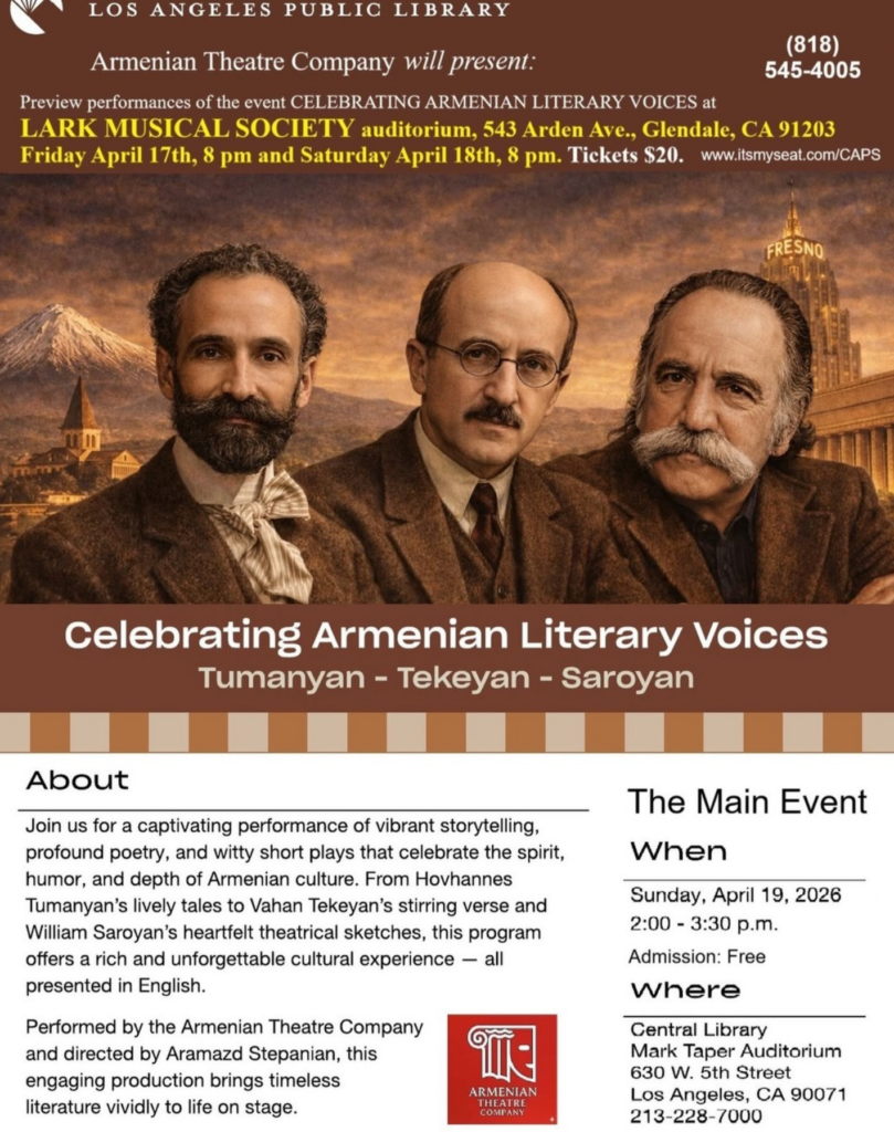 April is Armenian History Month a time to celebrate the rich culture, stories, and voices of the Armenian people. In honor of this month, the Armenian Theatre Company proudly presents…